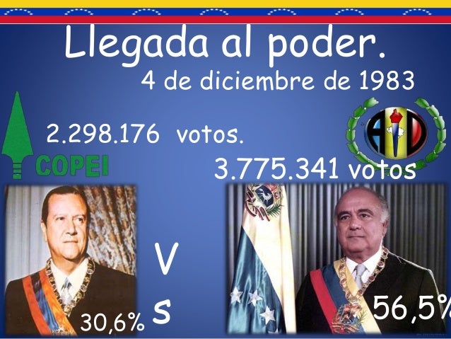 Como ejes de la estrategia económica se promovían la agricultura la industria y el turismo buscándose al mismo tiempo una transformación y modernización del sector público para redefinir su papel en la. En los primeros años de gestión el gobierno refinanció la deuda y secomprometió a pagar 26 mil millones de dólares a la banca acreedora. Jaime Lusinchi fue el candidato del partido Acción Democrática AD en los comicios que se realizaron el 4 de diciembre de 1983.